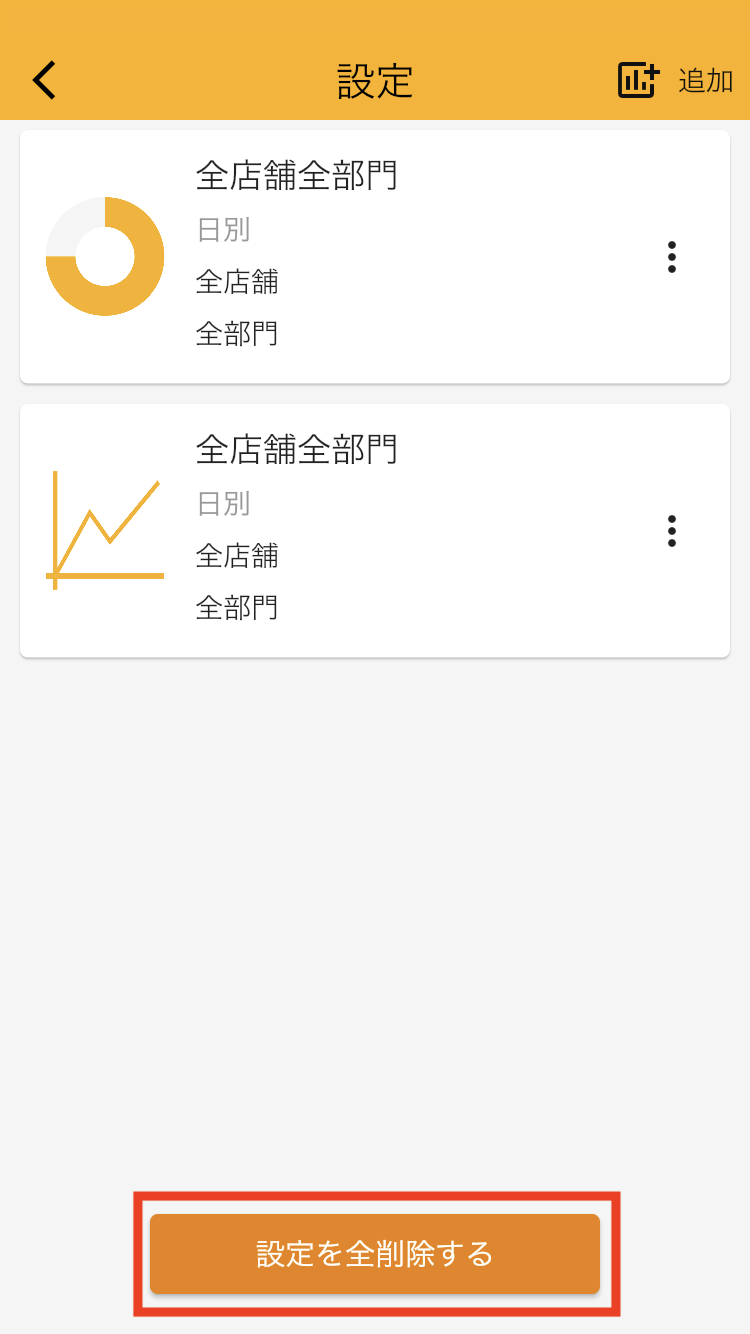 チャートの設定画面で「設定を全削除する」をタップすると、全削除することができます。