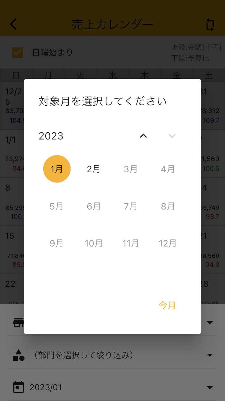 過去データの表示機能を追加 ご利用データがある限り、売上カレンダーで過去のデータを遡れるようになりました。 *データがある月は、黒字で表示されます。